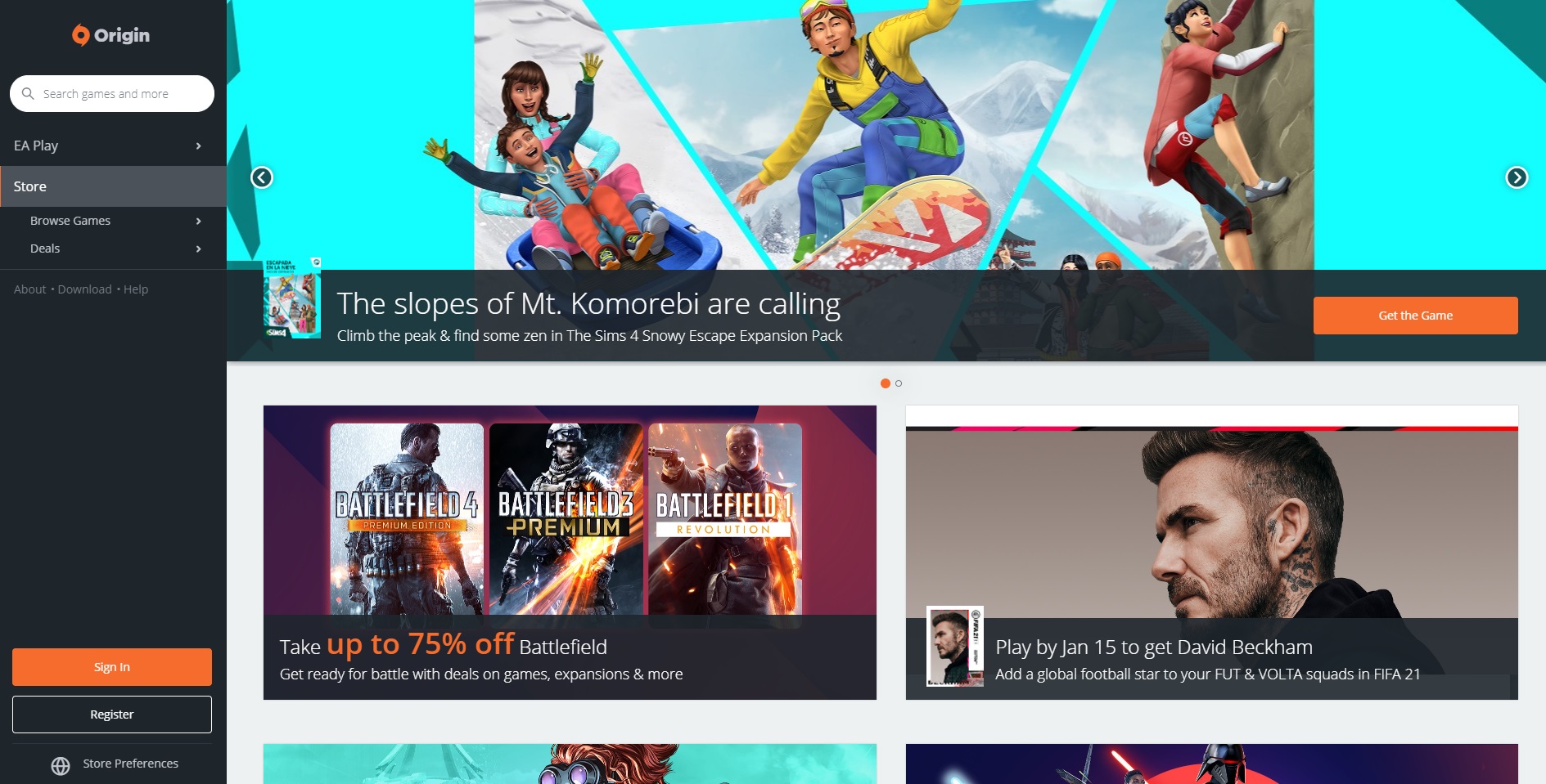 Origin is the online gaming platform from EA (Electronic Arts). It has been in the market for almost as many years as Steam and GoG, and its catalog is highly focused on the company’s games. So if you’re looking for a digital platform to play or find the best prices for franchises like The Sims, FIFA, or Battlefield, be sure to check out Origin.